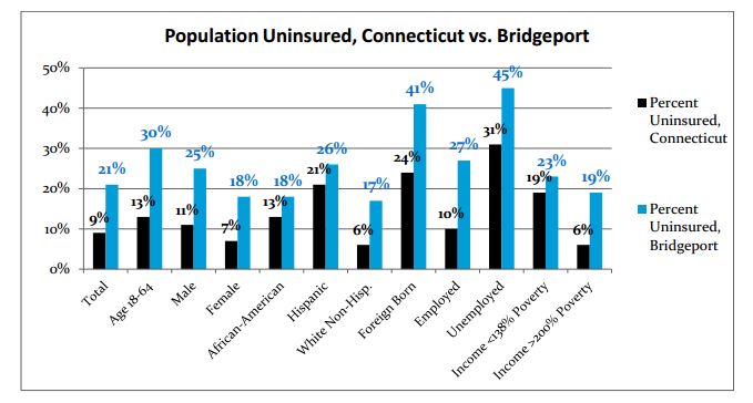 In Hartford, the new administrative requirements of H.R.1 will cause about 13,000 people to lose Medicaid coverage, which is about 11 percent of that city’s entire population. Other towns that will see large losses include Bridgeport (13,000 people), Waterbury (11,000 people), and New Haven (11,000 people).