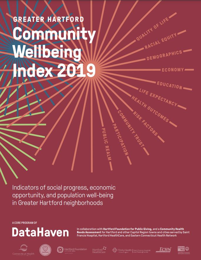 Published in October 2019, the Greater Hartford Community Wellbeing Index 2019 is the first comprehensive community indicators program for Greater Hartford, covering individual cities and neighborhoods throughout the area. Click here to download the 2019 report.
