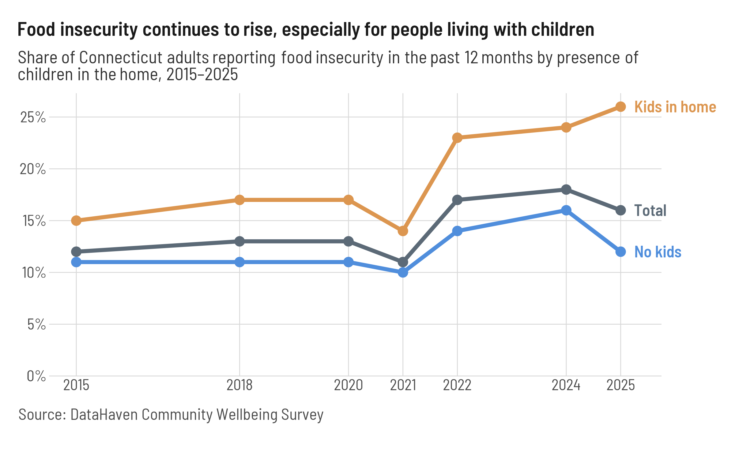 “Connecticut continues to show great resilience and a high quality of life, with more than 83 percent of adults saying they are satisfied with the place they live,” said Mark Abraham, Executive Director of DataHaven. “But the data also reveal areas of concern that communities are working hard to address, including cuts to food assistance, health care, and housing that over a million people in our state have been relying on. The results also show rising anxiety, worries about immigration enforcement, differences in access to economic and health opportunity, and financial stress, especially for renters and families with children.”